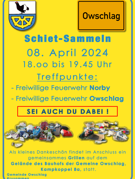 aktuellAllgemein Die BfO informiert: Schiet-Sammeln 08. April 2024 Moin, auch wir von der BFO beteiligen uns am Schiet-Sammeln in Owschlag am Montag, den 08.…Michael Brandt27. März 2024