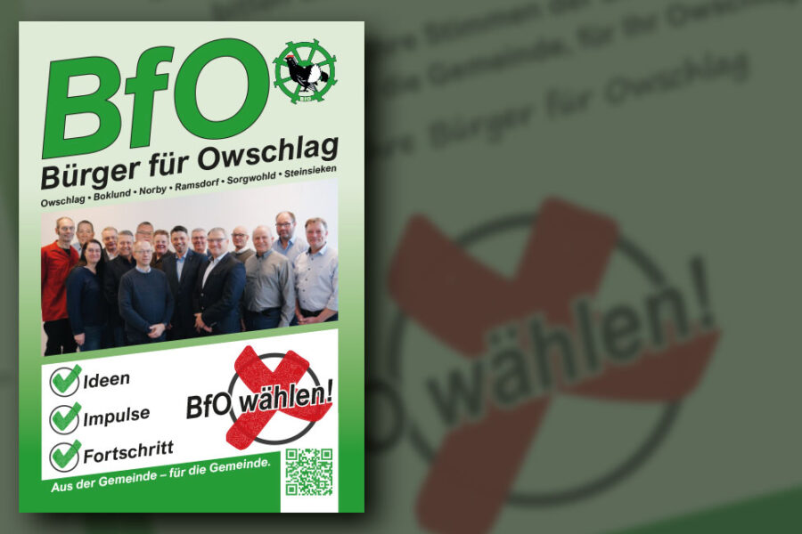 Kommunalwahl 2023 Die Bürger für Owschlag (BfO) stellen Kandidaten für Kommunalwahl auf „Wir wollen die Gemeinde Owschlag weiter entwickeln“ Die BfO hat auf ihrer außerordentlichen Mitgliederversammlung die…Michael Brandt3. März 2023